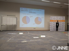 2013年5月7日(火)には、衆議院第二議員会館で「国会議員のための世界一大きな授業」を開催しました。国会議員25人(うち代理10人)、外務省、NGO関係者など合計61人が参加しました。国会議員が「生徒」役に、子どもたちが「先生」役となって授業を行うこのイベント。「先生」役は日頃から国際協力に取り組んでいる高校生5人が務めました。「先生」たちは立派に司会進行や先生役をこなし、創意工夫をこらした“ワールドマップ”というゲームを展開しました。これは、床に白いひもで一筆書きされた世界地図の上に、「世界の子どもの人口」、「世界の軍事費」、「学校に通っていない子ども」について世界での分布状況や規模をペットボトルのキャップの数量を使って一目で分かるように表現したものです。ゲームを通じて、市民の代表である国会議員に、途上国への教育支援の必要性を実感してもらい、日本の教育援助政策をよりよいものにしてもらうよう働きかけました。