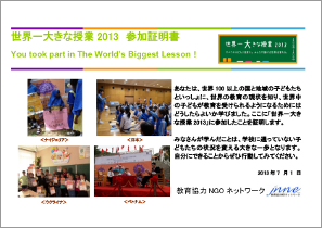 今年の参加証明書はこちらからダウンロードしてください。生徒一人ひとりに配布する場合は、お手数ですがコピーしてお使い下さい。