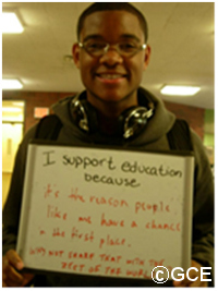 2012年の「世界一大きな授業」には、全国から502校・グループ、55,485人が参加。 2004年のスマトラ沖地震・津波で被災したインドの子どもたちが、地域再生に取組む様子を映した映像教材を使った授業が行なわれ、世界中の子どもが学校に通えるようになるために、自分たちにできることを考えました。 また、総理大臣や国家議員に取組んでほしいことをメッセージに書きました。学校以外にも、企業、ガールスカウト、地域でのグループ学習会など、さまざまな年齢層が参加しました。