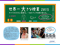 「世界一大きな授業」とは、世界の教育の現状を世界中で同じ時期に学び、教育の大切さについて考えるイベントです。今年も世界100か国以上で開催し、参加者の声を各国政府に届け、教育政策に反映するように働きかけます。「すべての子どもに教育を」を合言葉に2003年にスタートし、2008年には885万人が参加、ギネス記録にも認定されました。日本でも2015年には72,463人が参加しました。