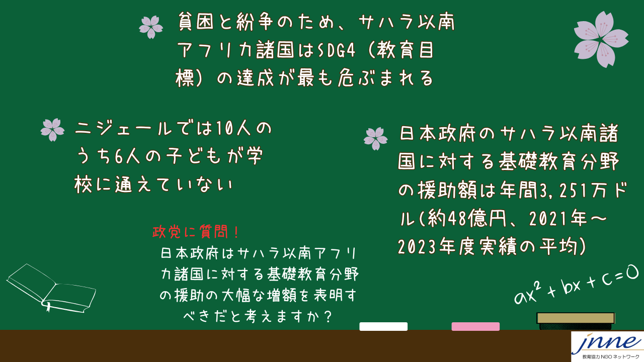 今年8月に横浜で第9回アフリカ開発会議(TICAD9)が開かれるにあたり、あなたの政党では、SDG4への貢献策として、日本政府はサハラ以南アフリカ諸国に対する基礎教育分野の援助の大幅な増額を表明すべきだと考えますか?